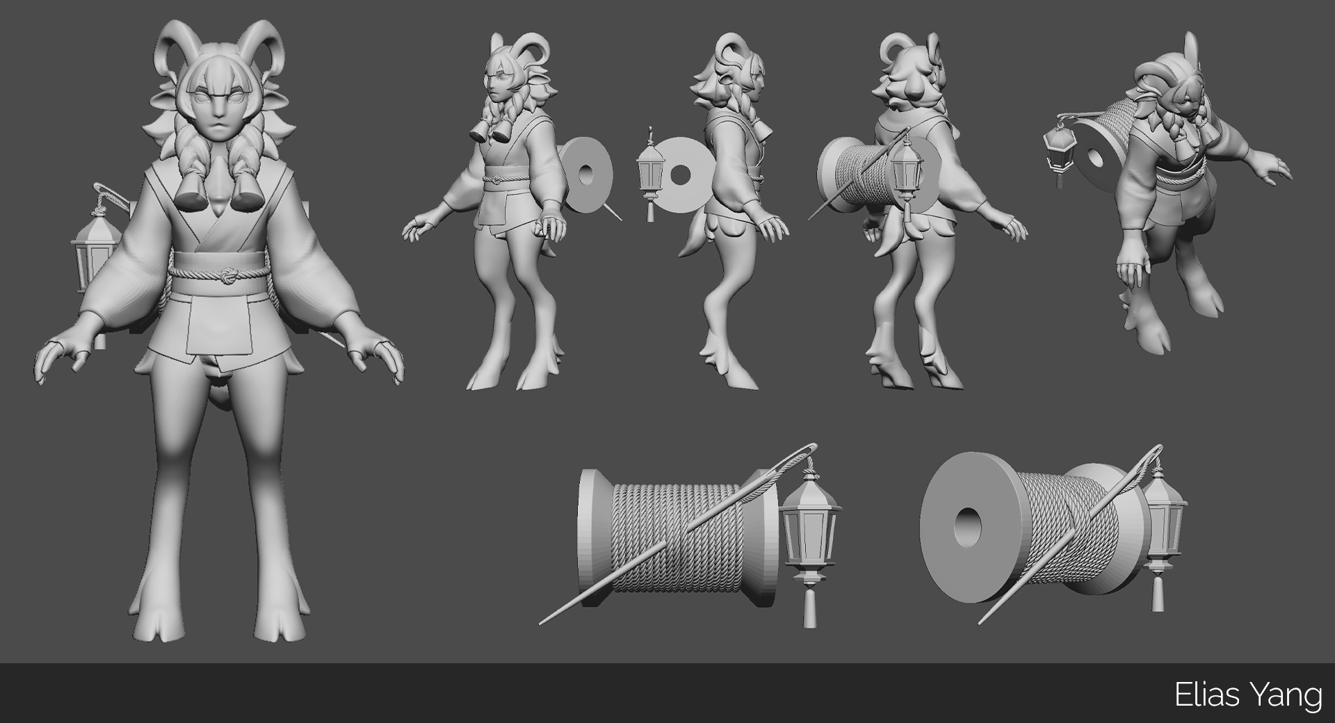 Designed, sculpted, and retopologized a sewing-themed ram character for 3D Character Art (Spring 2025).